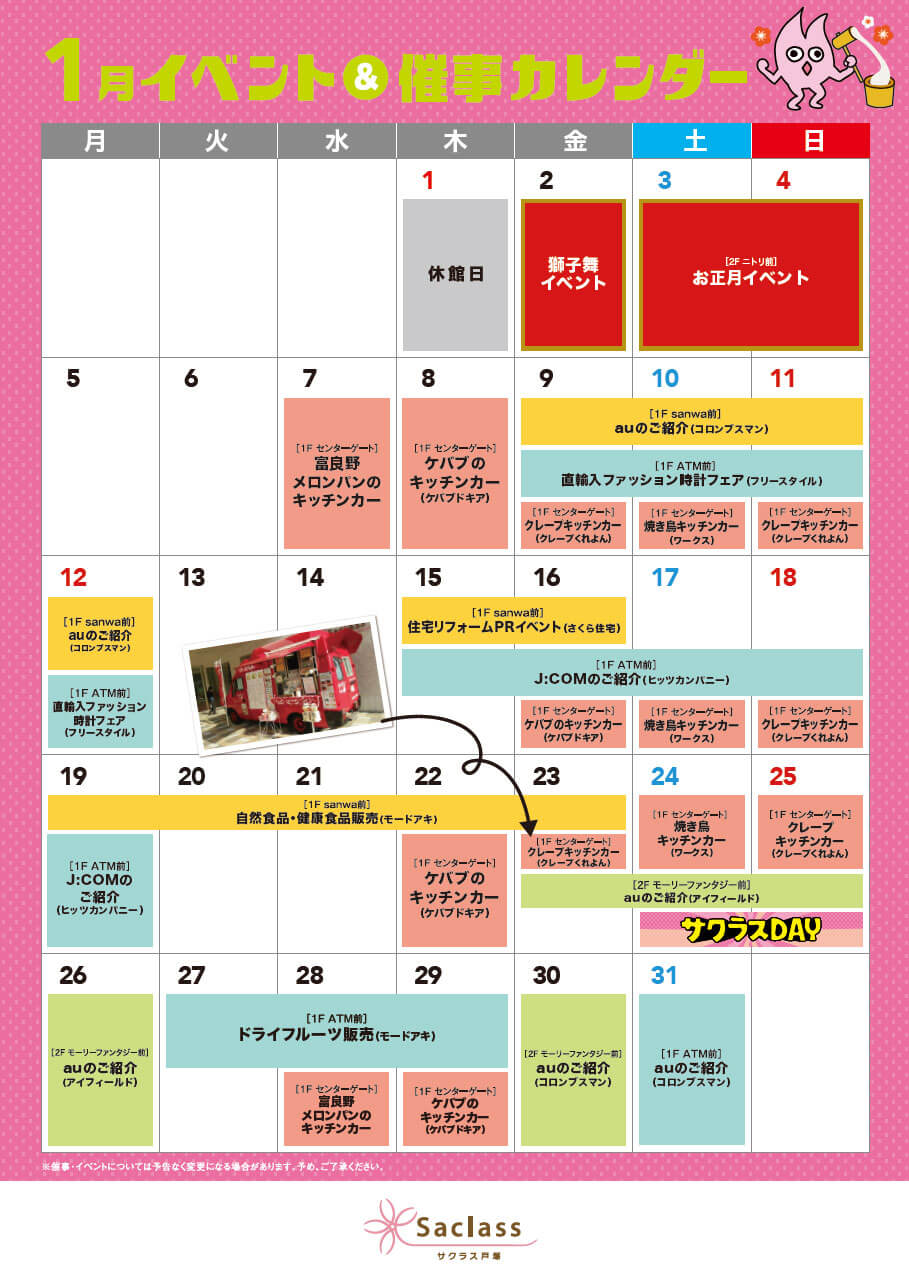 ※催事・イベントについては予告なく変更になる場合があります。予めご了承ください。
